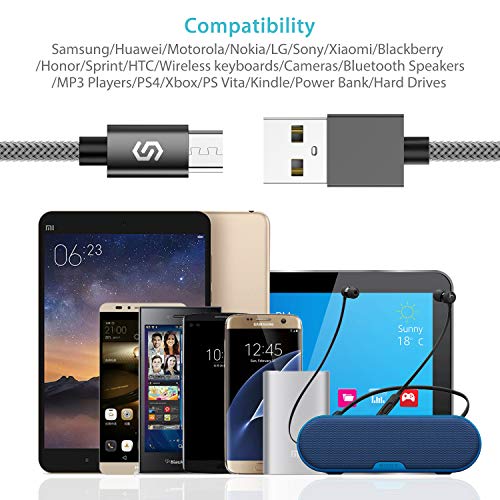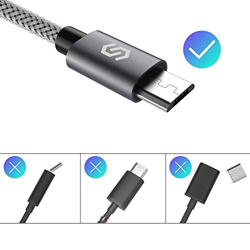 Syncwire - Cavo micro USB in nylon, 2 pezzi, 1 m, 2,4 A, sincronizzazione ad alta velocità, per smartphone Android, Samsung, HTC, Sony, Nexus e altri, colore: Grigio