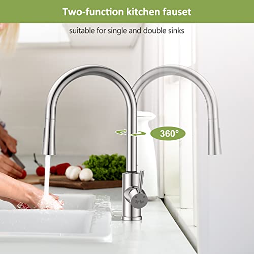 ARMATUR CUCINA IN ACCIAIO INOX spazzolato: il rubinetto da cucina è realizzato in acciaio inossidabile 304, antiruggine, 100% senza piombo e leggero. Allo stesso tempo, questo rubinetto da cucina è realizzato in resistente nichel spazzolato, resistente allo sporco e facile da pulire. Può essere pulito con un panno per l'uso quotidiano.