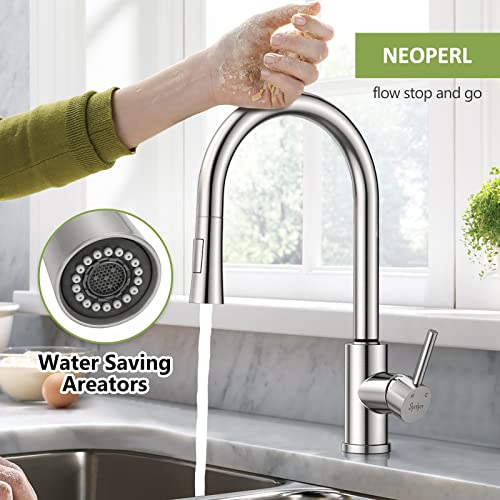 Synlyn Rubinetto da cucina con sensore touch, rubinetto da cucina con doppia doccetta estraibile, girevole a 360°, con beccuccio a C, 100% senza piombo e senza nichel