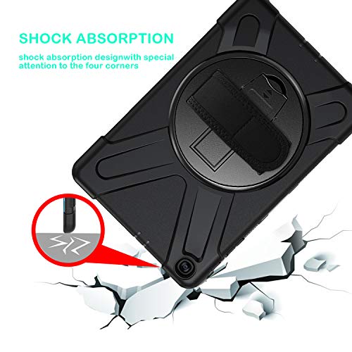 SYNTAKS - Custodia protettiva per Galaxy Tab A 10.1 2019 (modello: SM-T510 SM-T515), con supporto girevole a 360 gradi, cinghia da polso, sottile, resistente, antiurto, robusta
