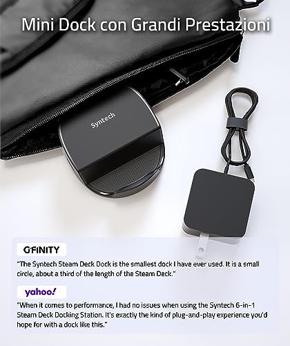 Aggiungi Estensibilità alla tua Configurazione di Gioco: Con la docking station Syntech Steam Deck & ROG Ally dock, puoi collegare il tuo Steam Deck & ROG Ally console portatile a un'ampia varietà di monitor, controller e periferiche come preferisci, oppure installarlo sul tuo deck di lavoro e caricarlo sul comodino. Notizie: Sblocca la modalità Turbo da 30W di ROG Ally seguendo la guida operativa nella sezione "Guide e documenti di prodotto" di Syntech.
