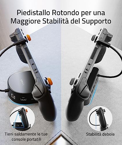La Qualità Incontra le Prestazioni: Realizzato in materiale ABS + PC di alta qualità, Il dock Steam Deck & ROG Ally dock è resistente, robusto e leggero.. È una scelta perfetta per l'uso quotidiano e il trasporto. Viene fornito con due impugnature antiscivolo per migliorare la precisione e la sensibilità durante il controllo dei giochi.