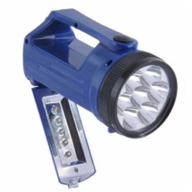 Corpo plastica impugnatura superiore Dimensioni mm 65 h 120 Doppia fonte luminosa 7+5 led Alimentazione 3 pile stilo AA non incluse