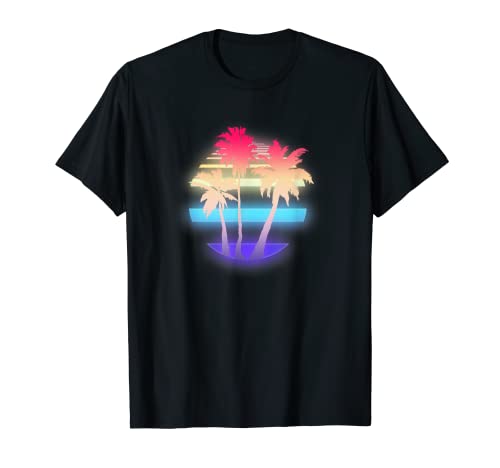 Synthwave Sun Palm Tree - Outrun estetico retinonda anni '80 Maglietta