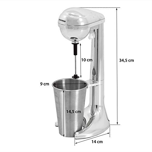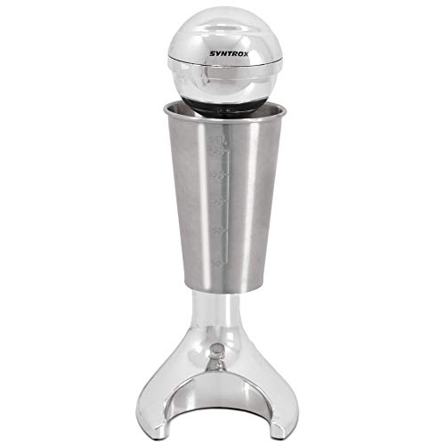 Syntrox Germany Montalatte elettrico, mixer per bevande, da bar, per albumi, per cocktail, fino a 22.000 giri/min, 2 velocità, con bicchiere in acciaio inox