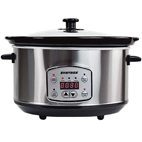 Syntrox Germany SC-350D Slow Cooker Digitale in Acciaio Inox, 3,5 Litri, con Timer e Funzione di Mantenimento del Calore, Nero