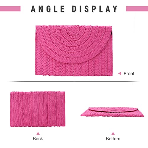 Syrads Pochette in paglia per donna Pochette estiva Pochette da spiaggia Pochette da spiaggia Borsa da spiaggia,Rosa rossa