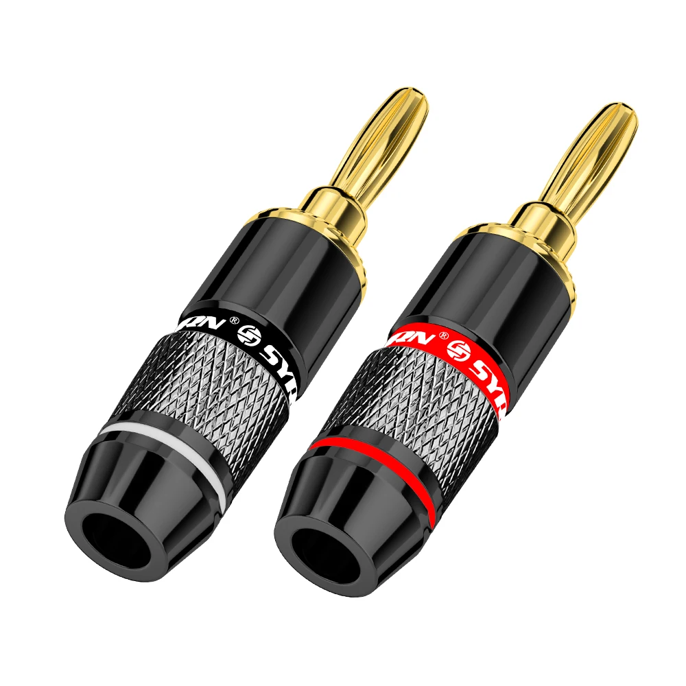 SYRNARN 2Pcs/1Pairs Banana Plugs Audio 24K Gold Plated Copper Speaker plug Binding Post Terminal Banana Connectors High Quality
