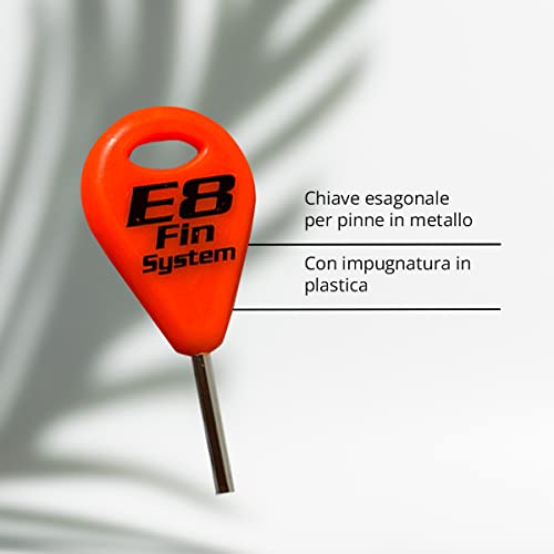 E8 FIN SYSTEM - Confezione da 1 Chiave per Pinna da Surf e 6 Viti per Pinna in Acciaio Inox - Accessori per tavola da Surf - Chiavi di Ricambio per Chiglia - Tasto per Pinna da Surf - Arancione