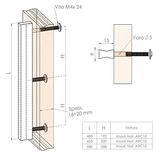 System Holz s.r.l. Coppia di Maniglie 680 mm in Alluminio - Finitura Anodizzato Naturale - per Mobili Cucina e Arredamento. Made in Italy.