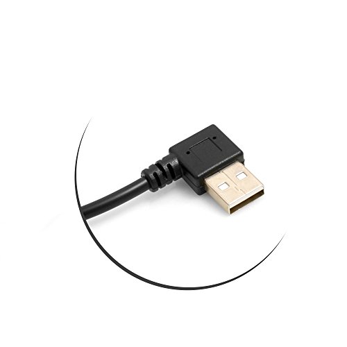Angolo destro del connettore USB A: per guardare il connettore "frontale", la parte "plastica" del connettore USB-A è "basso" e il cavo passa verso "destra".