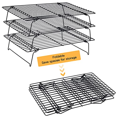 SYSYLY Griglie di Raffreddamento a 3 Livelli Impilabili con Rivestiemento Antiaderente Acciaio per Dolci da Forno, Rack di Raffreddamento Salvaspazio con Gambe Pieghevoli per Torte, Biscotti e Pane
