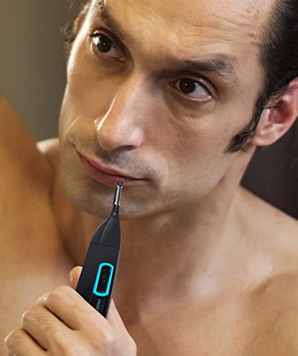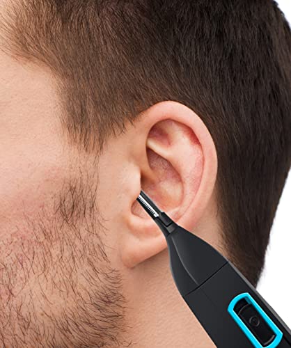 Taglia peli di naso, orecchie e sopracciglia con sistema di rifinitura protettivo per rimuovere rapidamente i capelli in modo sicuro evitando strappi, graffi e tagli.