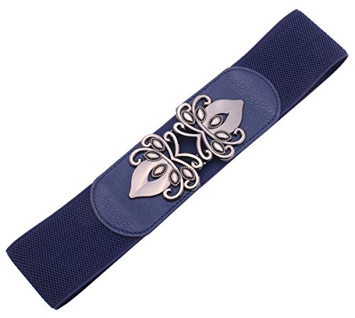 Syuer Womens Vintage Wide Elastic Stretch Waist Belt Retro Cinch Belt (L (75-92cm), Navy)
