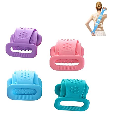 SYXLS 4 Pezzi Spazzola per Doccia in Silicone per la Schiena, Scrubber Posteriore in Silicone per Doccia, Spazzola per il Corpo, Extra Lunga e Doppia Faccia Scrubber per il Corpo