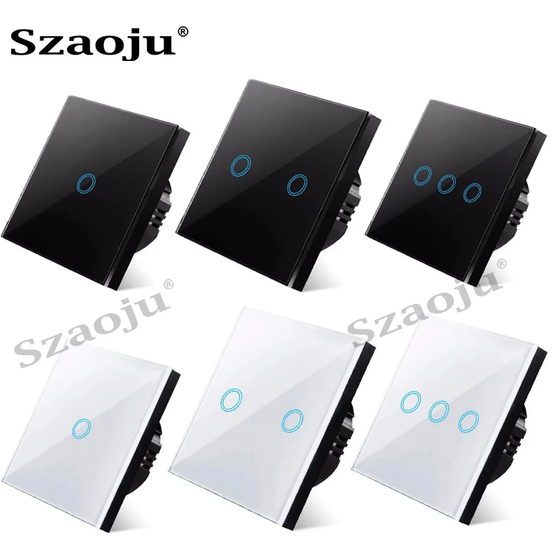 Szaoju Touch Switch EU Standard White Crystal Glass Panel Light Switch Ac110-220v Switch 1 Gang 1 Way ,Wall Lamp Touch Switch