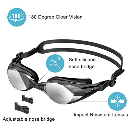 Szdavsi Occhialini da Nuoto Silicone Specchiati con Lenti Anti Appannamento Protezione UV Unisex Adulto per Donne Uomini Adulti Adolescenti Taglia Unica Triathlon e Sport Acquatic - Neri/Nero