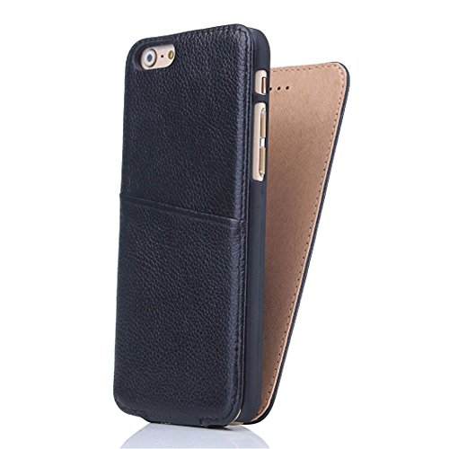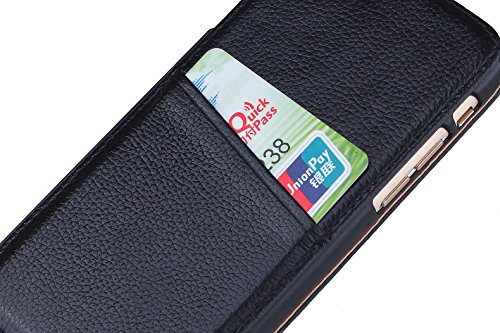 SZEETECH iPhone 6 / 6s, Custodia in vera pelle per iPhone 6, 6s-Custodia a portafoglio con scomparto per carte di credito, design Ultra Slim-Custodia in pelle con chiusura a linguetta verticale, anteriore e posteriore, colore: bianco, Pelle, nero - nero, iPhone 6s case black