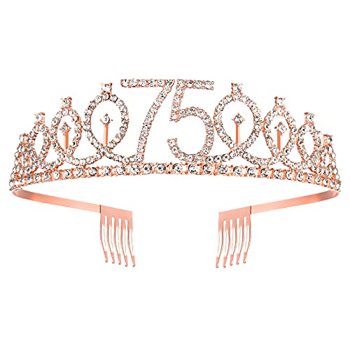 SZHUIHER Fascia e Tiara per 75° Compleanno, Fascia e Tiara per 75° Compleanno in Oro Rosa Favolosa Fascia e Tiara per Donne, Forniture per Feste Regalo per 75° Compleanno
