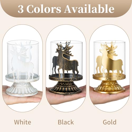 HA UN'AMABILE OMBRA DI CERVO - Questo set di portacandele retrò ha una base in metallo resistente di colore nero antico e, quando si accendono le candele, la luce della candela proietterà una forma di cervo sulla parete attraverso il motivo del cervo, creando un'atmosfera romantica e calda.