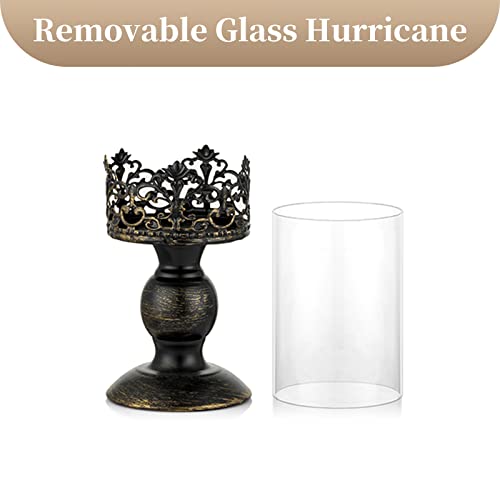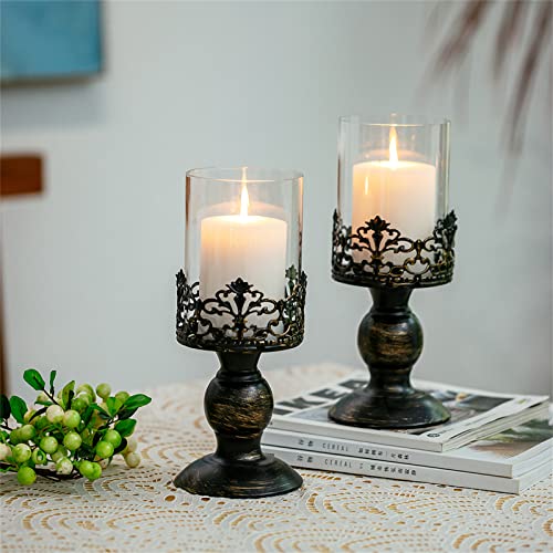 Sziqiqi Portacandele a Colonna Vintage Nero Anticato Set di 2, Versatile Centrotavola Metallico Floreale Centrotavola Base Floreale per Festa di Nozze Camino Decorazione della Mensola 27cm