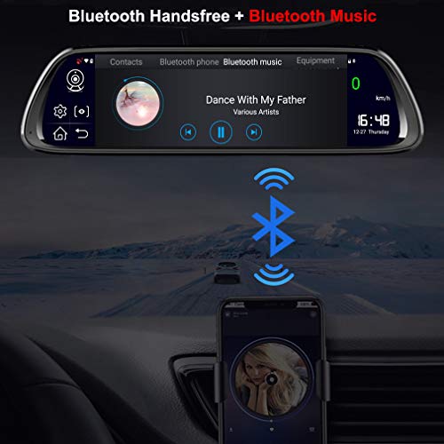 SZKJ D30 Specchietto retrovisore universale per auto, con dash cam retro, navigatore GPS, musica via Bluetooth, WiFi, Android 8.1, lenti doppie FHD 1080p