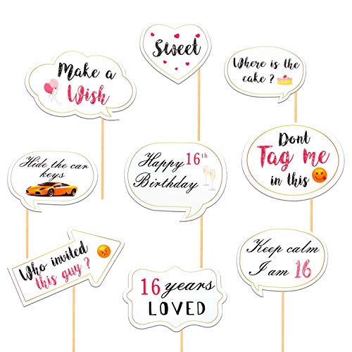 SZSMART 16 Anni Photo Booth Compleanno, 44pcs Birthday Photo Booth Props, Photo Booth Kit di Travestimento Festa di Compleanno Puntelli Decorazioni Forniture