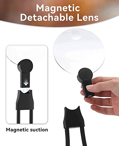 【Regolabile e separabile】: la lente d'ingrandimento può essere utilizzata come lente d'ingrandimento per il collo, lente d'ingrandimento o lente d'ingrandimento manuale come cinghia flessibile regolabile e design magnetico separabile.