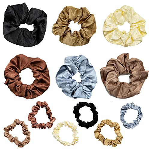 SZXMDKH 12 Pezzi Elastici per Capelli Colorati, Set - 6 Piccole Cravatte per Capelli in Seta e 6 Grandi Fermacoda per Capelli in Raso, Morbidi Scrunchies Accessori per Donne, Ragazze, Signore