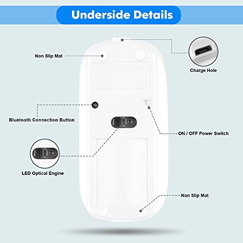 Szyee Mouse Bluetooth Mouse Senza Fili Mouse Mobile Mouse Ottico Mouse Carica Adatto per Computer Laptop Tablet Android Telefono Android Dispositivo Intelligente(Bianco)