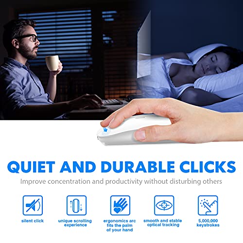 【MINI MOUSE SILENZIOSO RICARICABILE】 Nuova funzione del pulsante di disattivazione dell'audio, fino a 5.000.000 di clic, mouse Bluetooth non fa quasi rumore quando è in esecuzione, riduce il rumore fino al 95%. può essere facilmente alloggiato nella borsa del laptop o accessori borsa per rendere il vostro viaggio più conveniente. Allo stesso tempo, dopo lo spegnimento,e quindi collegare il mouse può lavorare in modo rapido, connettività intelligente e nessun codice richiesto.
