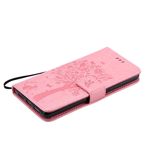 SZYT Cellulari Custodia per Huawei P9 Lite / Huawei VNS-L31, 5.2 pollice, modello Imprint Gatto e albero con manico nero, Rosa chiaro