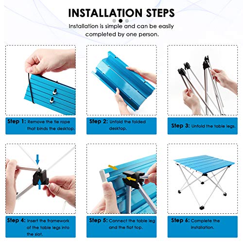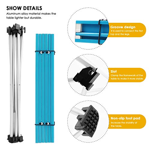 3. Durevole e stabile: la lega di alluminio rende il tavolo di lunga durata. Il piano superiore del tavolo è anticorrosivo e antiossidante. Il design unico antiscivolo per le gambe rende il tavolo solido.