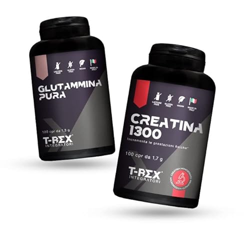T-Rex Integratori, Creatina Monoidrata + Glutammina CreaPulse - Integratore alimentare per massa muscolare, definizione e boost energetico pre workout (Compresse)