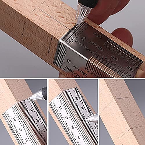 ➤UTILIZZO AMPIO - Il righello per la lavorazione del legno è adatto per la lavorazione del legno e per gli utenti domestici ed è adatto per la lavorazione del legno, nonché per il posizionamento e la marcatura di tenoni e tenoni.