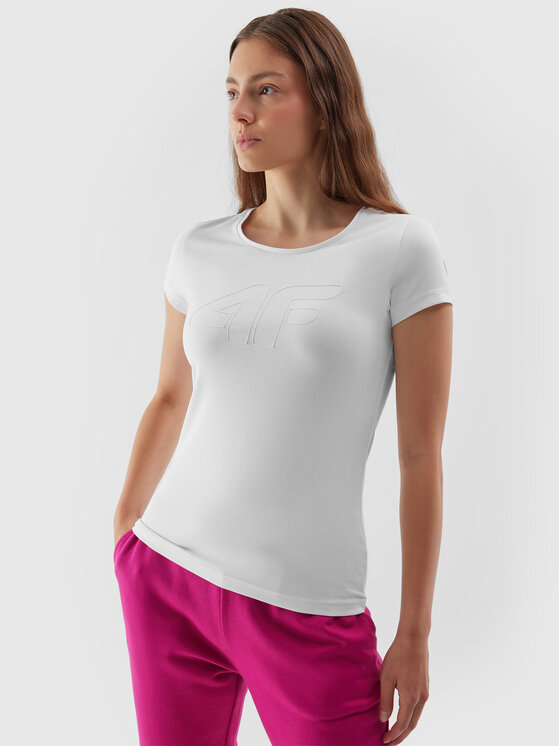 4F T-shirt 4FAW23TTSHF0907 Bianco Slim Fit