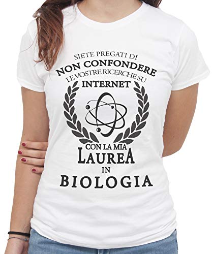 T-Shirt Non Confondere La Mia Laurea in Biologia con Le tue Ricerche su Internet Regalo Laureato-Eventi - Uomo-XL-Bianca