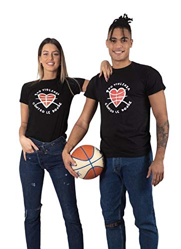 T-Shirt Cuore Maglietta Manica Corta Donna in Cotone Designer BEPPE RIBOLI #NOVIOLENZACONTROLEDONNE Progetto Sociale Pallacanestro Crema (Nero, L)