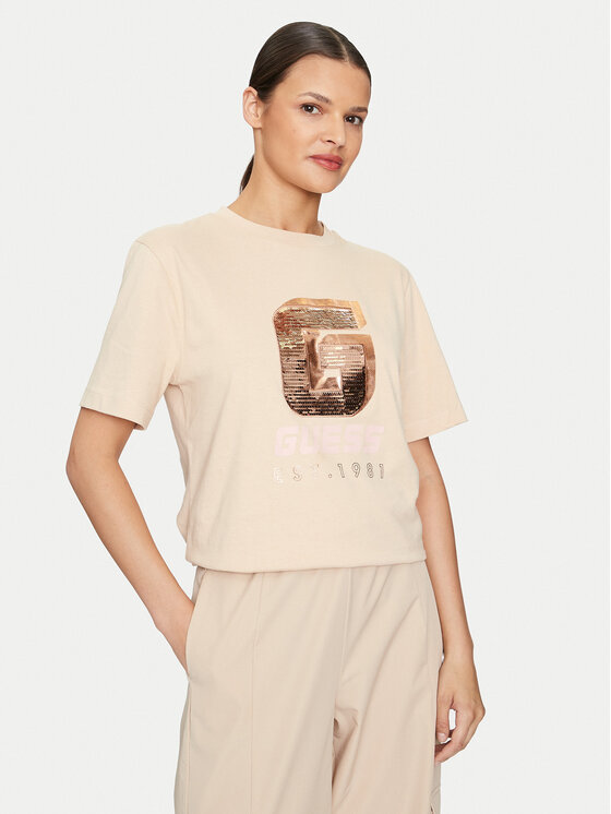 Guess T-shirt Ines V4YI07 I3Z14 Beige Regular Fit