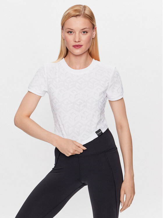 Guess T-shirt Macro V3YI04 KBSO0 Bianco Boxy Fit