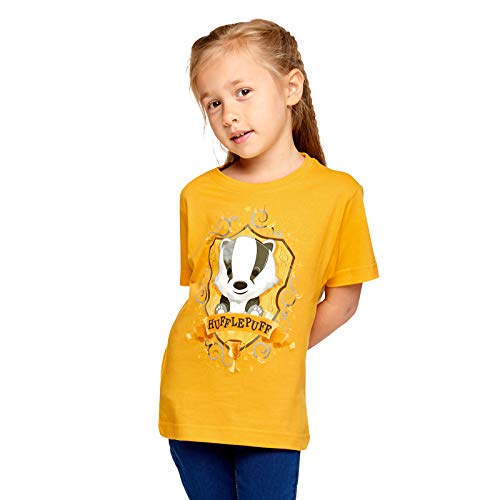 T-Shirt Harry Potter per Bambini T-Shirt Magenta Tassorosso Elven Forest Cotton Yellow - 134/140