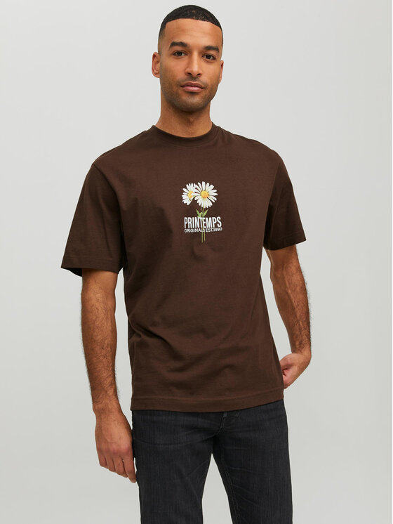Jack&Jones T-shirt Flores 12228776 Marrone Loose Fit