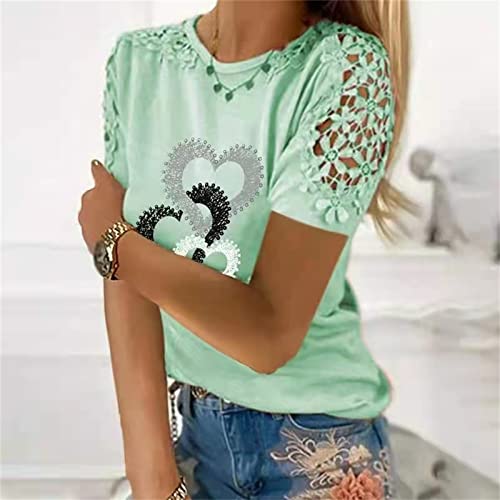 T-Shirt a Maniche Corte con Cuciture in Pizzo da Donna T-Shirt a Maniche Corte Girocollo Stampata Casual