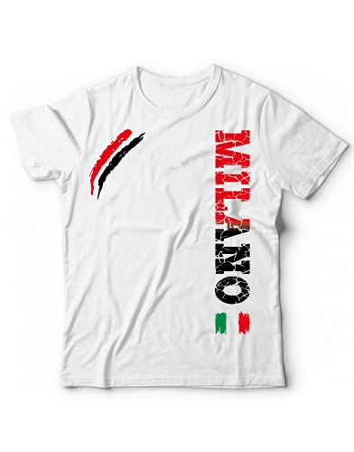 T-Shirt Milano rossonera 1899 Tifosi Ultras Calcio Supporter Campionato Made in Italy (Bianco, XL)