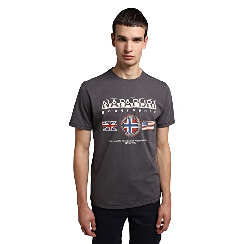 Maglietta Napapijri da uomo piombo in cotone, girocollo, maniche corte e con stampa impressa sulla parte frontale