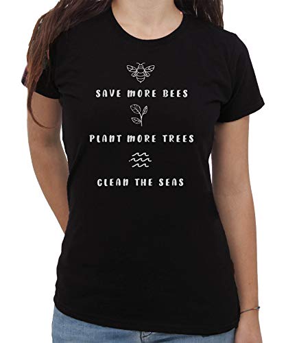 T-Shirt Salva più Api, Pianta più Alberi, Pulisci I Mari Ecologia-Famosi - Donna-L-Nera