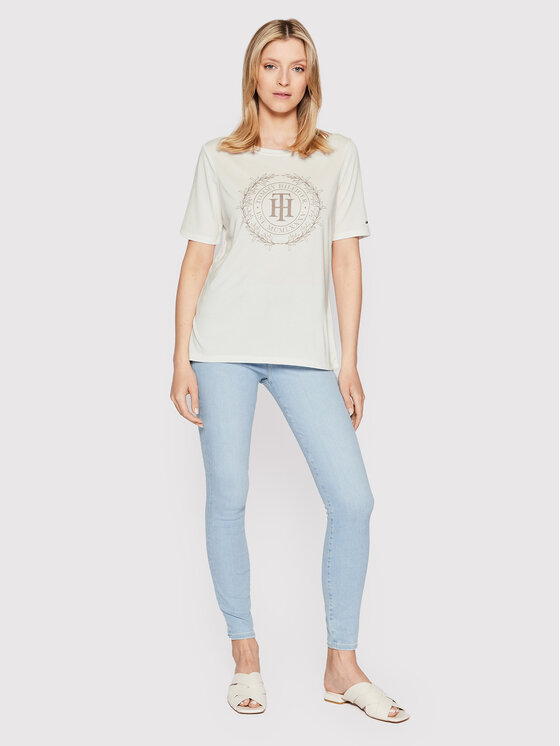 T-shirt Sueded WW0WW34419 Bianco Regular Fit