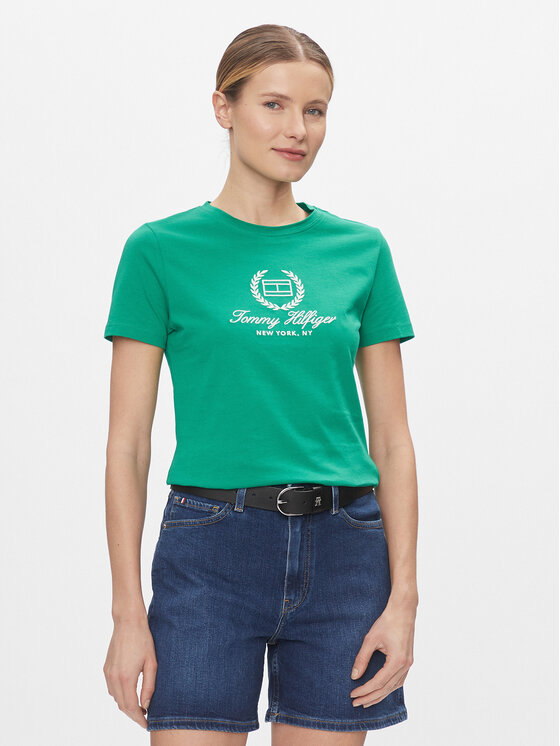 Tommy Hilfiger T-shirt Flag Script WW0WW41761 Verde Slim Fit