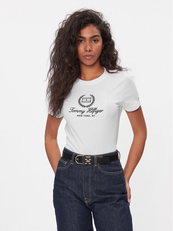 Tommy Hilfiger T-shirt Flag Script WW0WW41761 Bianco Slim Fit