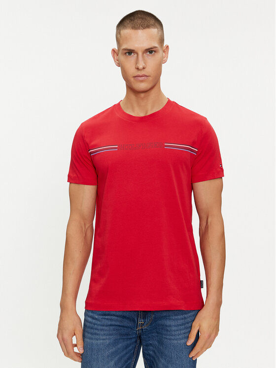 Tommy Hilfiger T-shirt Stripe Chest MW0MW34428 Rosso Regular Fit